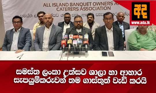 Read Moreවර්තමාන ගෝලීය යුධමය වාතාවරණය හමුවේ ආහාර , අමුද්රව්ය , ගෑස් සහ ඩීසල් මිළ ගනන් ඉහළ ගොස් ඇති පසුබිමක , තම සංගමයද ආහාරපාන සහ සපයන අනෙකුත් පහසුකම් සදහා 15% සිට ඉහලට මිළ ගනන් 04/08 දින සිට වැඩි කිරීමට පියවර ගන්නා බව සමස්ත ලංකා උත්සව ශාලා සහ ආහාර සැපයුම්කරුවන්ගේ සංගමයේ ( All Island Banquet Owners and Cateres Association ) සභාපති අකිල ජයරත්න මහතා පැවසීය .