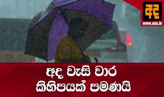 Read Moreඋතුරු, බස්නාහිර, සබරගමුව හා දකුණු පළාත්වලත් මහනුවර හා නුවරඑළිය දිස්ත්රික්කවලත් වැසි වාර කිහිපයක් අද දිනයේදි ඇතිවන බව කාලගුණ විද්යා දෙපාර්තමෙන්තුව පවසයි.