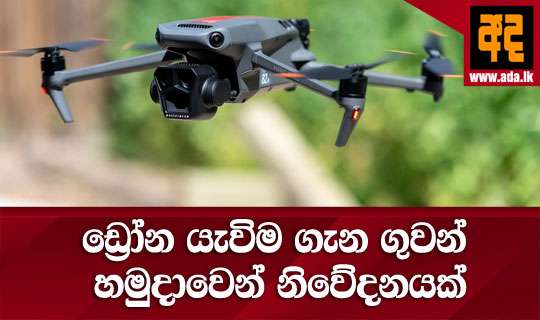 Read Moreආපදා තත්ත්වයෙන් පීඩාව පත් ප්ර දේශවල ඩ්රෝන යානා ක්රියාත්මක කිරිමේදී මහජනතාවගේ සහයෝගය ශ්රි ලංකා ගුවන් හමුදාව විසින් බලාපොරොත්තු වන බව ගුවන් හමුදාව නිවේදනයක් නිකුත් කරමින් පවසයි.