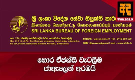 Read Moreවීසා උපදේශන කටයුතු සිදුකරන මුවාවෙන් ව්යාජ විදේශ රැකියා ආයතන පවත්වාගෙන යමින් මුදල් වංචාකරන සිදුවීම් ගණනාවක් පසුගිය සමයේ වාර්තා වූ අතර, එම ආයතනවලට එරෙහිව ශ්රී ලංකා විදේශ සේවා නියුක්ති කාර්යාංශයේ විශේෂ විමර්ශන අංශයේ පොලිස් ඒකකයේ නිළධාරීන් විසින් සිදුකරන වැටලීම් පුළුල් කර ඇති බව විදේශ සේවා නියුක්ති කාර්යාංශය කියයි.