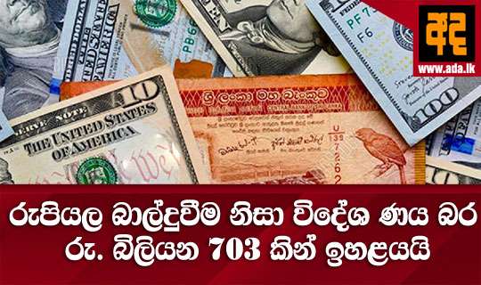 Read Moreඩොලරයට සාපේක්ෂව රුපියලේ අගය පහත වැටීම නිසා, පසුගිය මාස 15 තුල ශ්රී ලංකාවේ විදේශ ණය ප්රමාණය රු. බිලියන 703 කින් ඉහළ ගොස් ඇතැයි ශ්රී ලංකා මානව හිමිකම් කේන්ද්රය නිකුත් කළ නිවේදනයේ දැක්වේ.