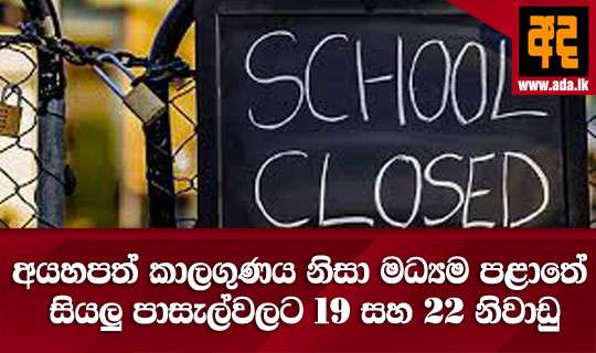 Read Moreමධ්යම කඳුකරයේ යළිත් වරක් මතුව ඇති අධික වැසි සහිත අයහපත් කාලගුණික තත්ත්වය මත හෙට (19) සහ 22 වන සඳුදා දින පළාතේ සියලු පාසල් සඳහා නිවාඩු ලබාදීමට මධ්යම පළාත් අධ්යාපන අමාත්යංශය තීරණය කර තිබේ.