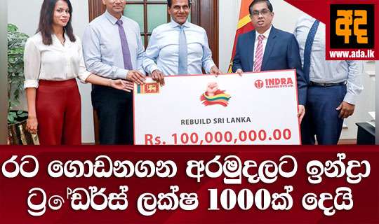 Read Moreදිට්වා සුළි කුණාටුවෙන් විපතට පත් ජනතාවට සහන සැලසීමේ රජයේ ‘Rebuilding Sri Lanka’ අරමුදල සඳහා Indra Traders (Pvt) Ltd විසින් රුපියල් මිලියන 100 මූල්යමය පරිත්යාගයක් සිදුකර තිබේ.