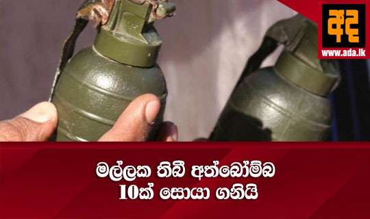 Read Moreකොළඹ මෝදර ප්රදේශයේ මල්ලක තිබී අත්බෝම්බ 10ක් සොයාගෙන තිබේ. ත්රස්ත විමර්ශන කොට්ඨාසයට ලැබුණු තොරතුරක් මත සිදුකළ සෝදිසියකදී මෙම අත්අබෝම්බ සොයාගෙන තිබේ.