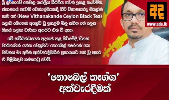 Read Moreමේ සම්බන්ධයෙන් අදහස් පළ කිරීමේදී ‘ගිනස් වාර්තාවක්’ යන්න වෙනුවට ‘නොබෙල් තෑග්ගක් යන වචනය මා අතින් අත්වැරදීමකින් ප්රකාශයට පත් වූ අතර ඒ පිළිබඳව කණගාටු වෙමි.