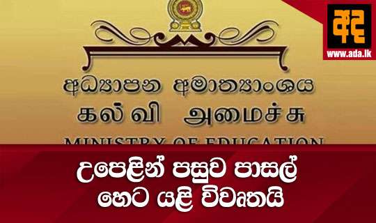 Read Moreඋසස්පෙළ විභාගයේ ඉතිරි කොටස නිමවීමෙන්ජ පසුවයේ පාසල් හෙට (21) සිට යළි විවෘත කෙරෙන බව අධ්යාපන අමාත්යාංශය සදහන් කරයි.