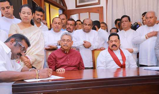 Read Moreජනාධිපති ගෝඨාභය රාජපක්ෂ මහතා සහ අග්රාමාත්යය මහින්ද රාජපක්ෂ මහතා ඇතුළු මැති ඇමතිවරුන් ඉදිරියේ ආරුමුගන් තොණ්ඩමන් මහතා නාම යෝජනා පත්රය අත්සන් කල අතර , අත්සන් කරන ලද නාම යෝජනා පත්රය ශ්රි ලංකා පොදු ජන පෙරමුණේ ජාතික සංවිධායක බැසිල් රාජපක්ෂ මහතා භාර ගන්නා ලදි.