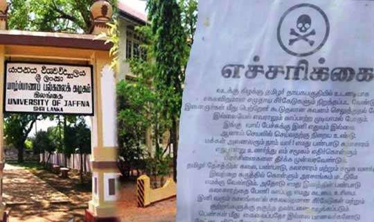 Read Moreයාපනය විශ්වවිද්යාලයට ඇතුලුවන නවක සිසුන් වෙනුවෙන් නවක වදය ලබාදෙන්නවුන්ට දැඩි දඬුවම් ලැබෙනු ඇති බව දැනුවත් කරමින් නවක වදයට එරෙහිව අනතුරු අඟවා ඊයේ (10) රාත්රියේ යාපනය විශ්ව විද්යාල භූමිය තුළ කිසියම් පිරිසක් විසින් පෝස්ටර් අලවා ඇත.