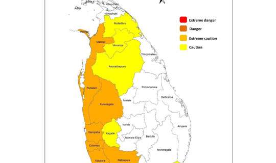 වයඹ, බස්නාහිර පළාත්වලටත් මන්නාරම, රත්නපුර, ගාල්ල, මාතර දිස්ත්රික්කවලටත් අදළ වන පරිදි මෙම නිවේදනය නිකුත් කර තිබේ.