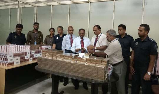 Read Moreදේශීය නිෂ්පාදිත දුම්වැටි තොගයක් නීතිවිරෝධී ලෙස මැදපෙරදිග ගුවන් තොටුපළ දෙකක සිට මෙරටට ගෙන ආ ශ්රී ලාංකික ගුවන් මගීන් සිව් දෙනෙකු අද (14) දින අලුයම කටුනායක ගුවන් තොටුපළ පැමිණීමේ පර්යන්තයේ දී රේගු නිලධාරීන් පිරිසක් විසින් අත් අඩංගුවට ගෙන තිබේ