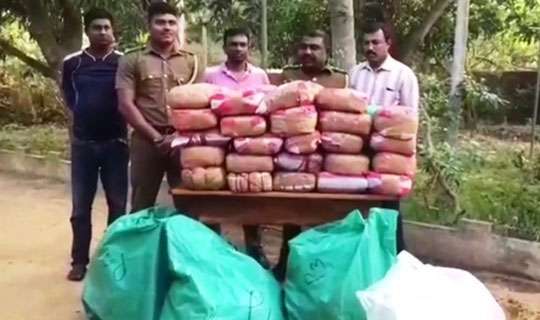 Read Moreයාපනය, තොන්නමන්නාරු, ප්රදේශයේ සඟවා තිබූ රුපියල් කෝටි එකහමාරකට ආසන්න වටිනාකමින් යුත් කේරළ ගංජා කිලෝ 110ක් සමඟ පුද්ගලයකු අද(06) අත්අඩංගුවට ගත් බව යාපනය සංගානෙයි සුරාබදු කාර්යාලය පවසයි. නාවික හමුදාව හාසංගානෙයි සුරාබදු කාර්යාල නිලධාරීන් ඒකාබද්දව සිදු කළ විශේෂ මෙහෙයුමකදී සැකකරු විසින් අදාල කෙරල ගංජා තොගය මුහුදු වෙරල ප්රදේශයේ සඟවා තිබියදී අත්අඩංගුවට ගෙන තිබේ.