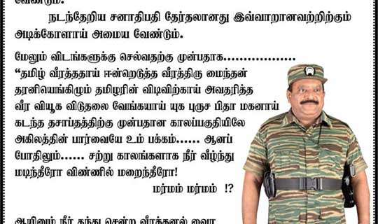 Read Moreඑල්.ටී.ටි. මහවිරු සමරුව වතුකරයේ පවත්වන ලෙස ඉල්ලමින් ප්රභාකරන්ගේ ඡායාරූපය සහිතව දමිළ භාෂාවෙන් මුද්රණය කරන ලද අත්පත්රිකා වතුකරයේ බෙදා හැරි තරුණයින් දෙදෙනෙක් බගවන්තලාව පොලීසිය මගින් ඊයේ (27) රාත්රියේ සැකපිට අත්අඩංගුවට ගත් බව බගවන්තලාව පොලීසිය පැවසීය.