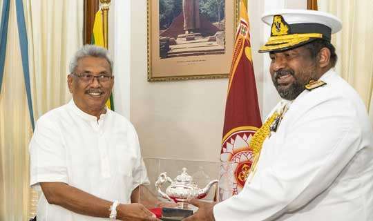 Read Moreආරක්ෂක මාණ්ඩලික ප්රධානී අද්මිරාල් රවීන්ද්ර විජේගුණරත්න මහතා හා අභිනව ජනාධිපති හා සන්නද්ධ සේවාවන්හි සේනාවිධායක ගෝඨාභය රාජපක්ෂ මහතා අතර නිල හමුවීම ඊයේ (19) ජනාධිපති ලේකම් කාර්යාලයේදී සිදු විය.