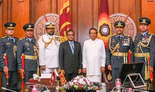 Read Moreශ්රී ලංකා ගුවන් හමුදාවෙහි නිලධාරින් සහ සෙසු නිලයන් උදෙසා විරෝධාර විභූෂණය, වීර වික්රම විභූෂණය, රණ වික්රම සහ රණ ශූර පදක්කම් පිරිනැමීම සේනාධිනායක ජනාධිපති මෛත්රීපාල සිරිසේන මහතාගේ ප්රධානත්වයෙන් ඊයේ (11දා) පස්වරුවේ ජනාධිපති කාර්යාලයේ දී සිදු විය
