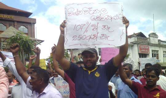 Read Moreරජයේ සේවකයන්ට වැඩි කළ බව කියන සියයට 107 ක වැටුප් වැඩිවීම සහ රුපියල් 2,500 ක දීමනාව විශ්ව විද්යාල කාර්ය මණ්ඩලයටත් ලබා දෙන ලෙස ඉල්ලමින් විශ්ව විද්යාල වෘත්තීය සමිති ඒකාබද්ධ කමිටුවේ සංවිධානයෙන් පේරාදෙණිය විශ්ව විද්යාලයේ සේවක පිරිස අද (30) වනදා මහනුවර ඔරලෝසු කණුව ඉදිරිපිටදී විරෝධතා උද්ඝෝෂණයක් පැවැත්වූහ.