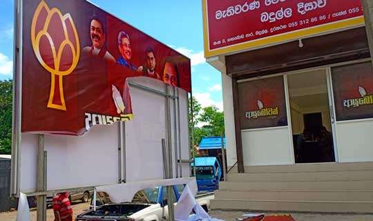 Read Moreශ්රී ලංකා පොදුජන පෙරමුණ ජනාධිපතිවරණ සදහා ප්රථමයෙන්ම විවෘත කරන ලද බදුල්ල දිස්ත්රික් මැතිවරණ කාර්යාලයේ ප්රදර්ශන පුවරුවක් ඊයේ (16) රාත්රියේ විනාශ කර ඇතැයි බදුල්ල පොලීසියට පැමිණිලි කර තිබේ .