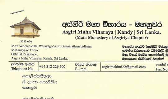 Read Moreසිද්ධිය අනාවරණයවූ විගස පොලීසිය ක්රියාත්මක වී සැකකරු අත්අඩංගුවට ගෙන තිබෙන බව දැන ගන්නට ලැබුණු බවත් එකී සිද්ධිය සම්බන්ධයෙන් තව දුරටත් පරීක්ෂණ සිදුකරන ලෙසත් අදාළ ලිපිය මගින් මහනාහිමියන් පොලිස්පතිවරයාගෙන් ඉල්ලා ඇත.