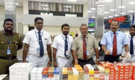 Read Moreචීනයේ නිෂ්පාදිත දුම්වැටි තොගයක් නීතිවිරෝධී ලෙස ශ්රී ලංකාවට රැගෙන ආ චීන ජාතික ගුවන් මගියෙකු අද (29) දින අලුයම කටුනායක ගුවන් තොටුපළ පැමිණීමේ පර්යන්තයේ දී රේගු නිලධාරීන් පිරිසක් විසින් අත්අඩංගුවට ගෙන ඇති බව රේගු මාධ්ය ප්රකාශක , අතිරේක රේගු අධ්යක්ෂක ජනරාල් සුනිල් ජයරත්න මහතා පැවසීය.