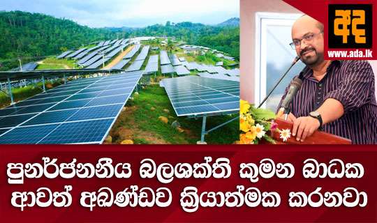 Read More“පුනර්ජනනීය බලශක්ති ව්යාපෘති අඛණ්ඩව ක්රියාත්මක කරනවා. ඒ ව්යපෘති නිසා ජනතාවට මතුවන ගැටළු මානුෂිකව සළකා බලා ඒවා විසදන්නත් ගත හැකි සියළු පියවර ගන්නවා. පුනර්ජනනීය බලශක්ති උත්පාදනය ජාතික අවශ්යතාවයක් සහ ජාතික වැඩපිළිවෙලේ කොටසක් බව හැමෝම වටහා ගත යුතු යැයි” බලශක්ති අමාත්යවරයා ප්රකාශ කලේ ගාල්ල හියාර ප්රදේශයේ ඉදිකරන කරන ලද මෙගාවොට් 5ක සූර්යබලශක්ති ව්යාපෘතිය විවෘත කිරීමේ උත්සව අවස්ථාවට අද (04) එක් වෙමිනි.