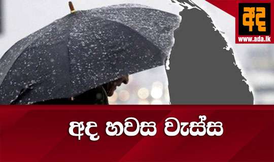 Read Moreතද වැසි පිළිබඳව කාලගුණයෙන් අවවාදාත්මක නිවේදනයක් නිකුත් කර තිබේ. අද පස්වරු 5.30ට නිකුත් කර ඇති මෙම නිවේදනය ඉදිරි පැය 24ක කාලයක් සඳහා වලංගු වෙයි. බස්නාහිර, වයඹ හා සබරගමුව පළාත් හා ගාල්ල, මාතර, මහනුවර හා නුවරඑළිය දිස්ත්රික්ක සඳහා වලංගු වන පරිදි මෙම නිවේදනය නිකුත් කර තිබේ.