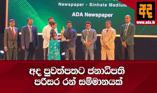 කොළඹ බී.එම්.අයි.සි.එච්. හිදී පැවැති ජනාධිපති පරිසර සම්මාන උළෙලේදී අද පුවත්පතට ජනාධිපති රන් සම්මානයක් හිමිවිය. අද පුවත්පත වෙනුවෙන් එහි විශේෂාංග කර්තෘ දිනිති අබේවර්ධන මහත්මිය විසින් එම සම්මානය ජනපති අනුර කුමාර දිසානායක මහතා අතින් ලබා ගත්තාය.