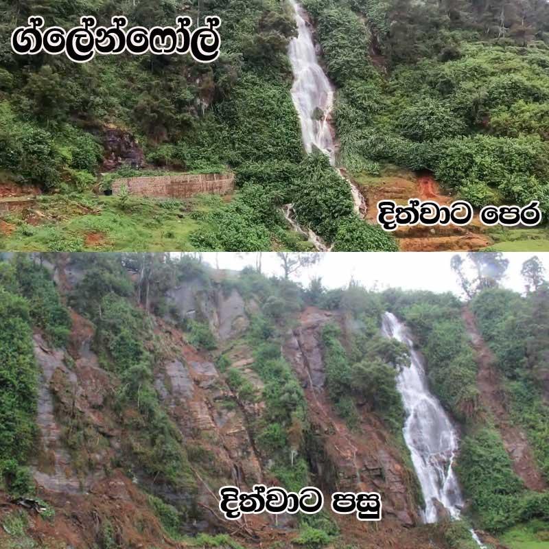 පින්තූර- දිය ඇල්ල හානියට ලක්ව ඇති අයුරු එක් ඡායාරූපයකින් සහ හානි වීමට පෙර පැවති අයුරු අනෙක් ඡායාරූපයෙන් දැක්වේ.
