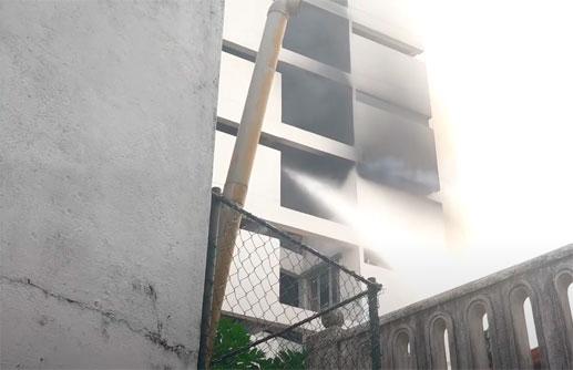 නිවාස සංකීර්ණයේ සිව්වන මහලේ හටගත් මෙම ගින්න හේතුවෙන් ඉහළ මහල්වල සිරවී සිටින ජනතාව මුදාගැනීමේ කටයුතු මේ වනවිට ආරම්භ කර ඇත.