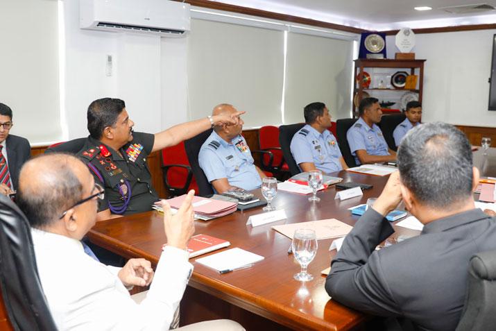 ආරක්ෂක නියෝජ්ය අමාත්ය මේජර් ජෙනරල් අරුණ ජයසේකර (විශ්රාමික) ගේ ප්රධානත්වයෙන් පැවති මෙම හමුවට ආරක්ෂක ලේකම් එයාර් වයිස් මාර්ෂල් සම්පත් තුයියාකොන්තා (විශ්රාමික) ඇතුළු ජ්යෙෂ්ඨ ආරක්ෂක සහ පරිපාලන නිලධාරීන් පිරිසක් සහභාගී වූහ.