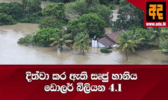 නොවැම්බර් මස අග දී ශ්රී ලංකාවට බලපෑ දිත්වා සුළි කුණාටුව හේතුවේ ගොඩනැගිලි සහ අන්තර්ගතයන්, කෘෂිකර්මාන්තය සහ තීරණාත්මක යටිතල පහසුකම් සඳහා ඇමරිකානු ඩොලර් බිලියන 4.1 ක සෘජු භෞතික හානියක් සිදු කර ඇති බව ලෝක බැංකු සමූහයේ ගෝලීය වේගවත් පශ්චාත් ආපදා හානි ඇස්තමේන්තු (GRADE)වාර්තාව පවසයි. අද නිකුත් කළ මෙම වාර්තාවේ දැක්වෙන්නේ මෙම පාඩුව ශ්රී ලංකාවේ දළ දේශීය නිෂ්පාදිතයෙන් සියයට 4 කට පමණ සමාන වන බවයි .