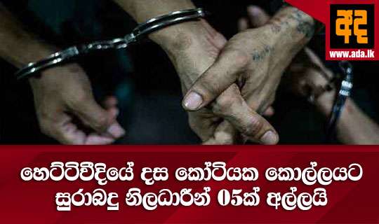 Read Moreකොළඹ හෙට්ටිවීදියේ රන් භාණ්ඩ අලෙවිසැල් දෙකකින් රුපියල් දස කෝටි විසි ලක්ෂයක මුදලක් කොල්ලකෑමකට සම්බන්ධ සුරාබදු දෙපාර්තමේන්තුවේ නිලධාරීන් 05ක් අත්අඩංගුවට ගත් බව පොලිස් මාධ්ය ප්රකාශක කාර්යාලය පවසයි. ඒසේම සැකකාර සුරාබදු නිලධාරීන් කොළඹ මහේස්ත්රාත් අධිකරණයට ඉදිරිපත් කිරීමෙන් අනතුරුව ලබන මස 07 දා තෙක් රක්ෂිත බන්ධනාගර ගත කර තිබේ.